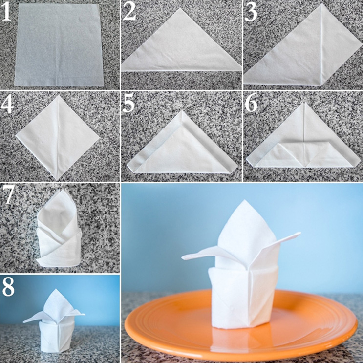 Masaların şıklığını tamamlayan ürünlerden biride peçetelerdir. Firmamızdan almış olduğunuz baskılı peçeteleri veya kendi kağıt peçetelerinizi değişik şekillerde katlayarak masanıza hoş bir görünüm kazandırmanıza yardımcı olmak için sizlerle peçete katlama tekniklerini paylaşıyoruz.